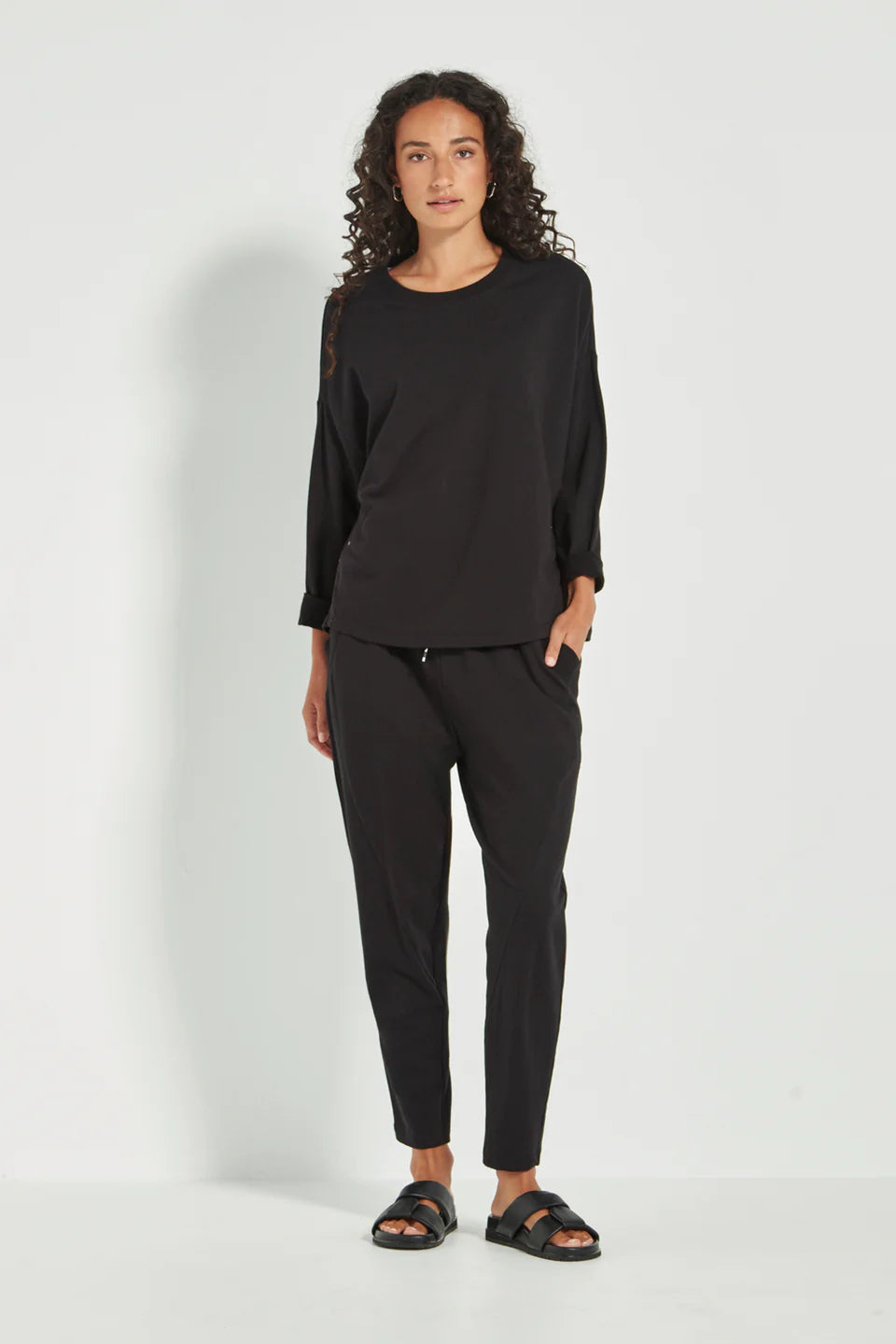 The Civic Pant is your relaxed essential, refreshed in timeless solid colours for maximum versatility. Based on the best-selling Charm silhouette, it features a tapered leg that finishes at the ankle, an elasticated drawstring waist for all-day comfort, curved front pockets, panelled leg detail, and patch pockets at the back. Crafted in soft stretch cotton-elastane knit, it’s the ideal off-duty pant that still looks pulled together. Pair with your favourite tee, knit, or the Downtown jacket for easy, everyday style.