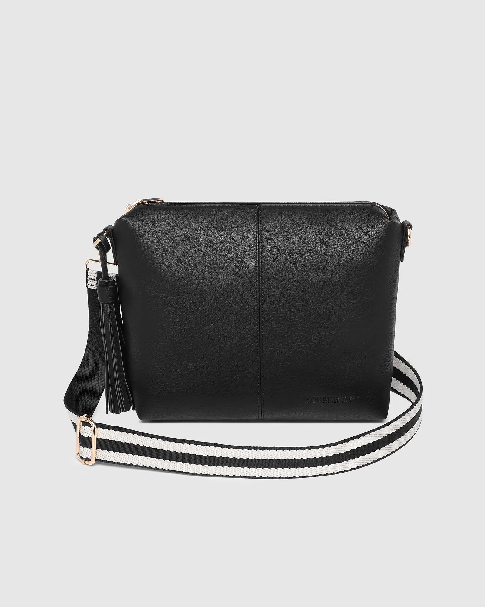 The Louenhide Daisy Black Crossbody Bag with Stripe Strap is a gorgeously soft and slouchy bag; it's a best-selling style for a reason! Full of functionality, secure your essentials in two slip pockets, one zip pocket, and a backside zip pocket. Complete with a new sporty adjustable and detachable webbing strap and fun tassel, the Daisy Black Stripe is a relaxed and understated style that will be a staple for seasons to come. If the Daisy Black Crossbody Bag is too big for you, feel free to shop the smaller version - The Kasey Crossbody Bag.