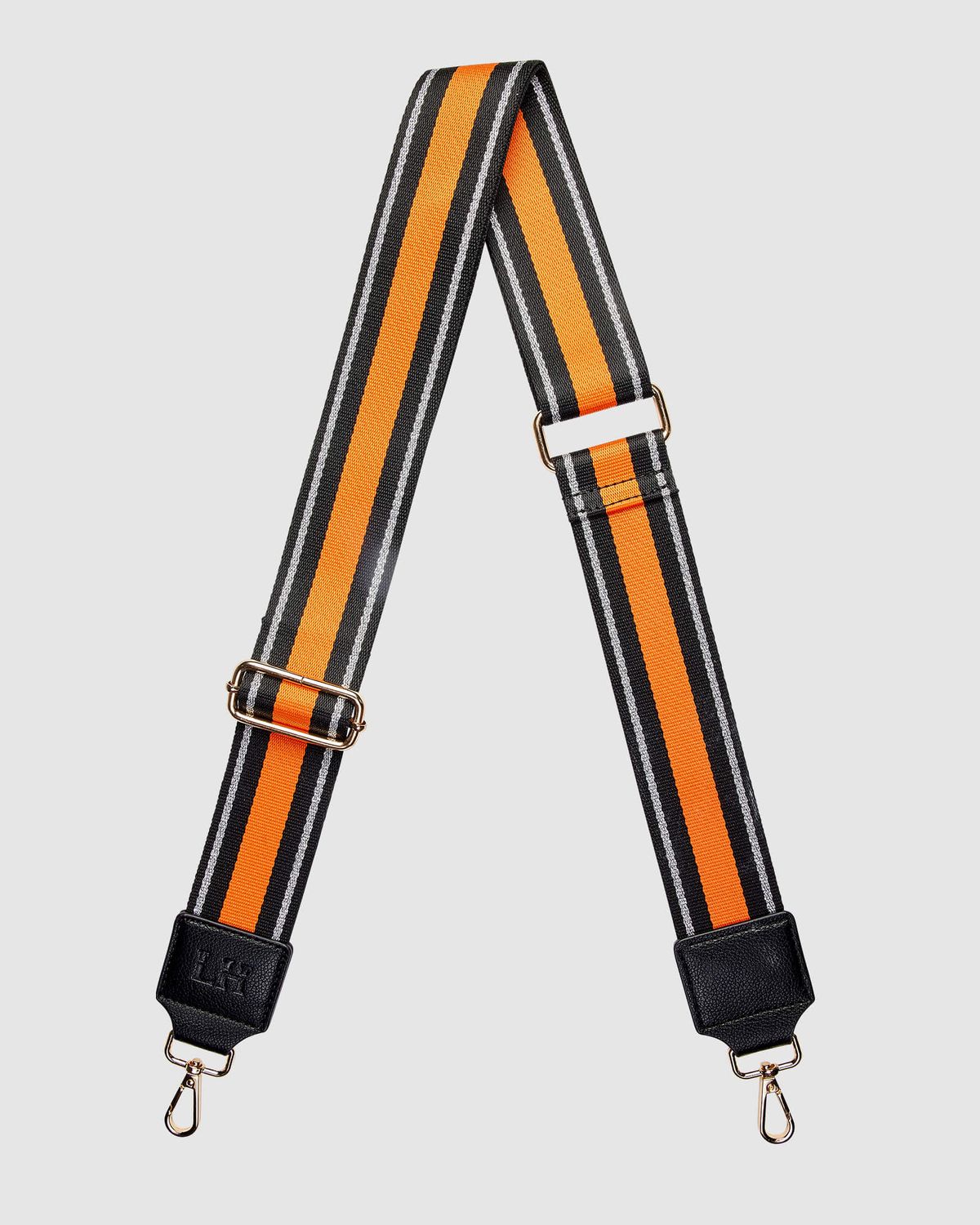 The Louenhide Santana Guitar Strap is a stylish webbing strap featuring a gorgeous and bright metallic stripe design. Complete with LH embossed polyurethane vegan leather and light gold hardware, this adjustable strap is the perfect way to switch up your everyday crossbody or travel bag style. The Santana Guitar Strap is a wider fit and sits comfortably on your shoulder, ideal for travelling, shopping trips or a work commute.