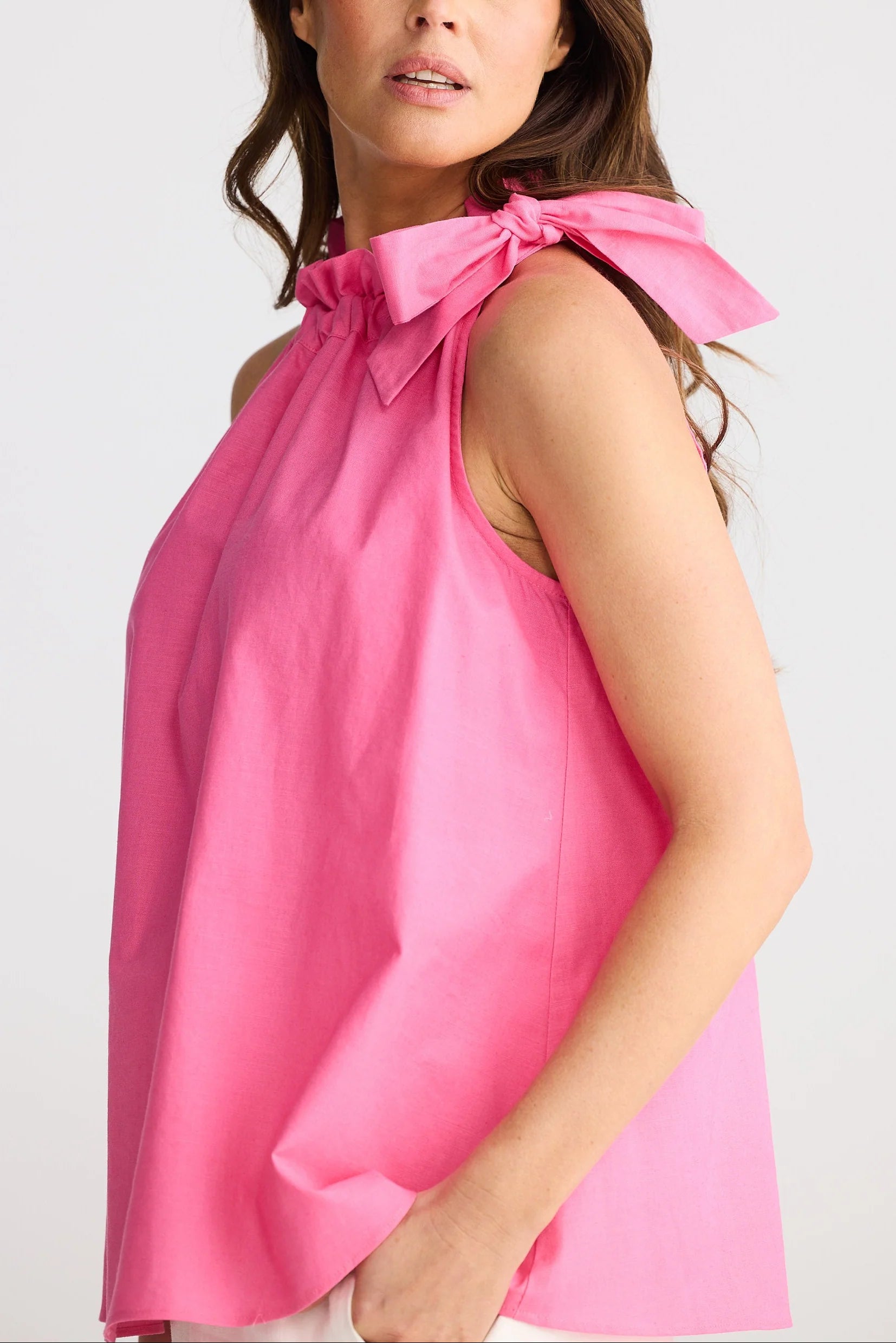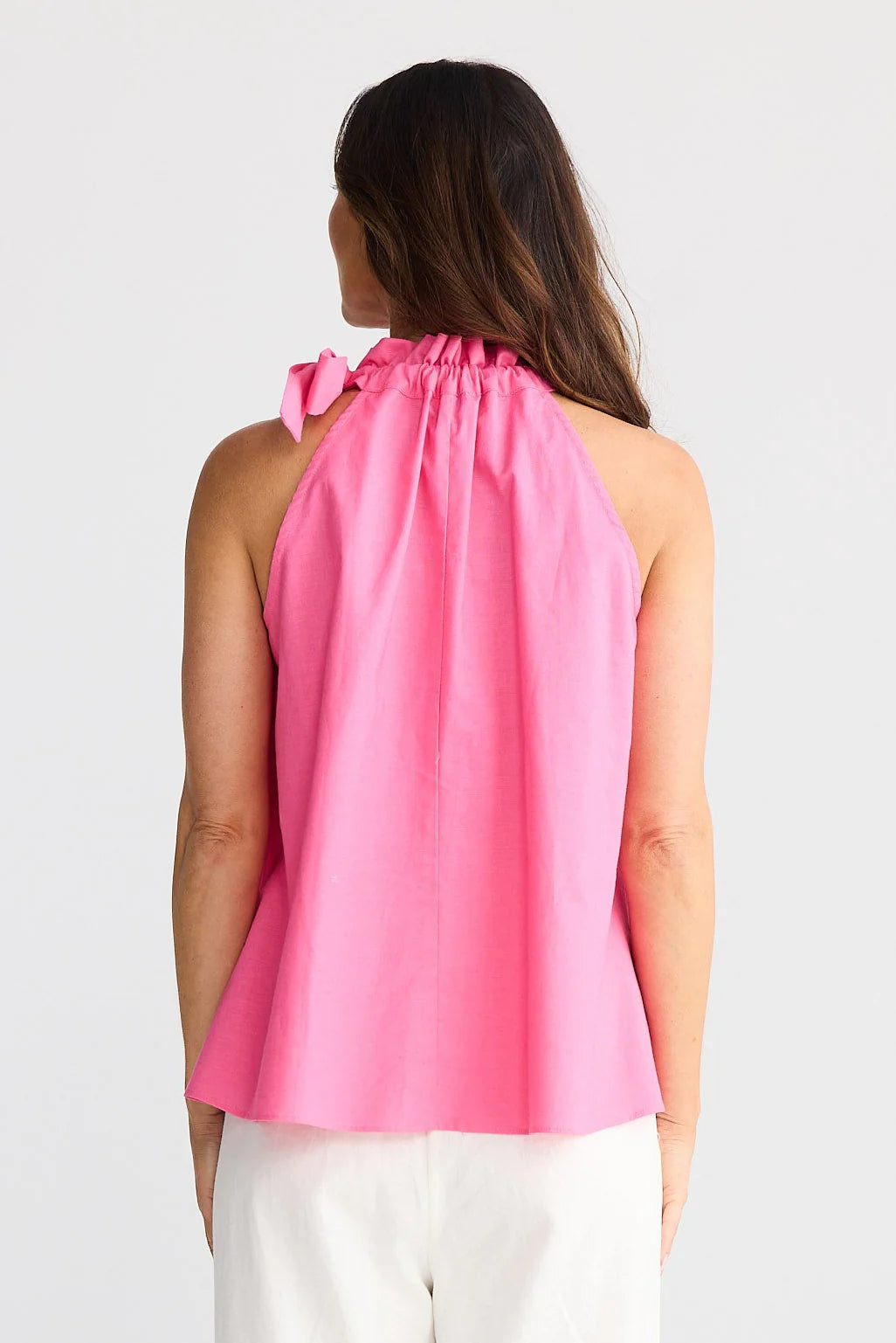 • High neckline with tie detail