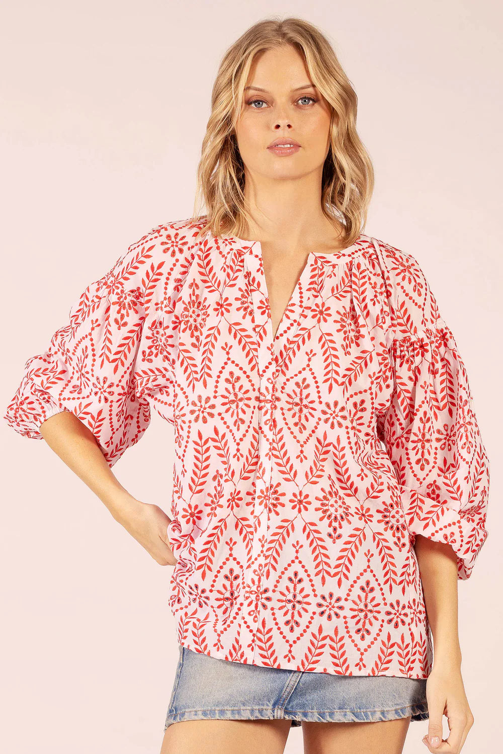 The Twenty Embroidered Lace Shirt features soft cotton fabric adorned with delicate embroidery, offering a light and elegant look. Designed with a relaxed silhouette, it promises comfort without compromising sophistication, ideal for warmer days. Style it alongside the Shambala Lace Pants for a modern, refined outfit. A distinctive piece from Lola Australia’s collection.